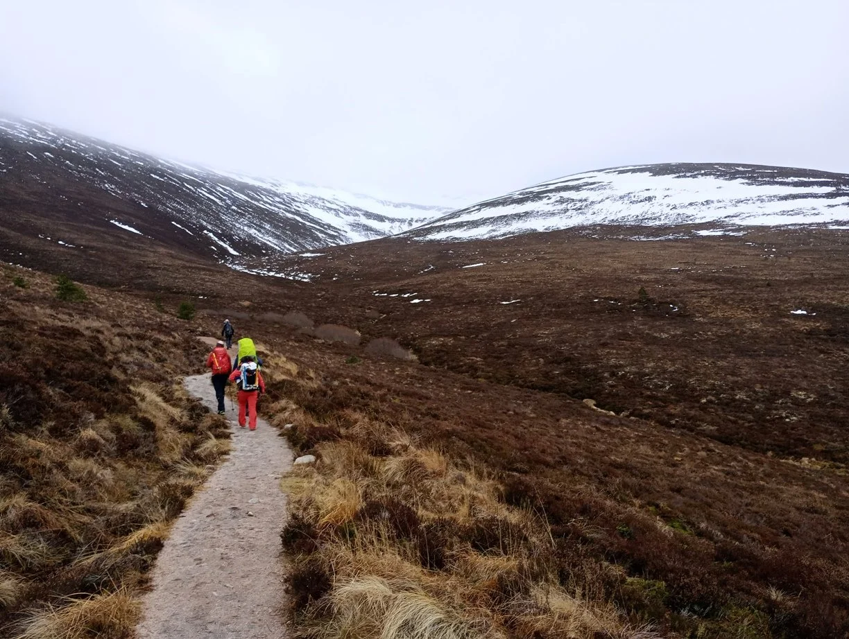 An improving avalanche forecast and a lull in the weather encouraged a group of five to meet in Glen Feshie to climb Sgor Gaoith. It was surprisingly warm heading through the forest and up the main path towards Sgor Gaoith.