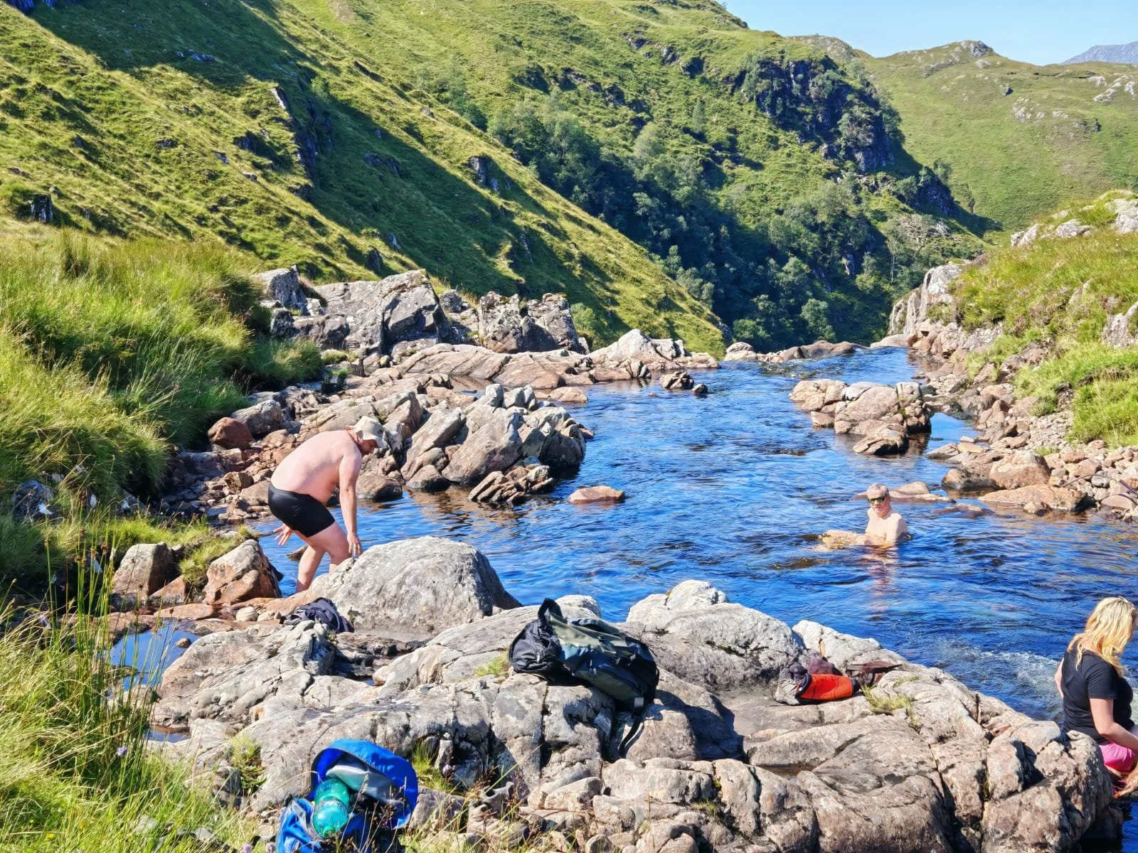 The route down was a reverse of the ascent, again the burn was welcome, refreshing hot bodies.