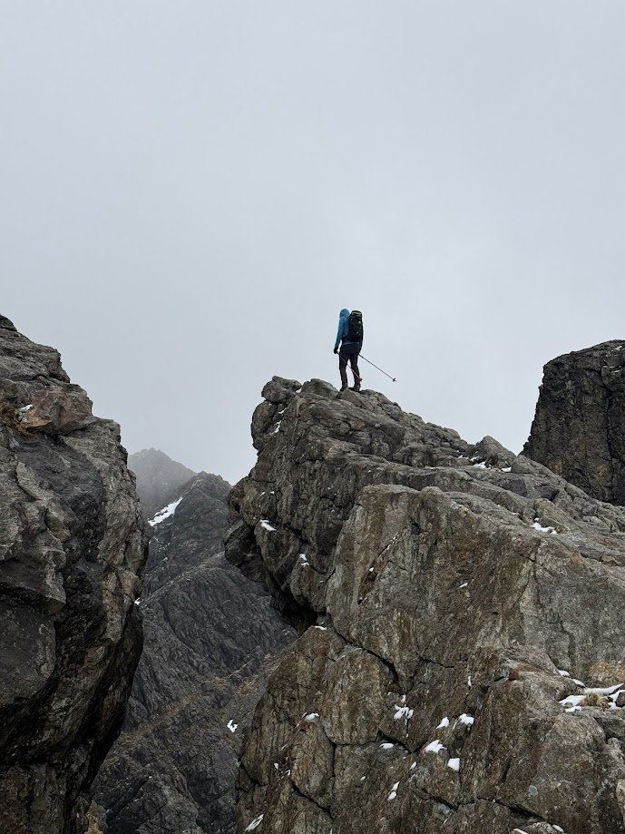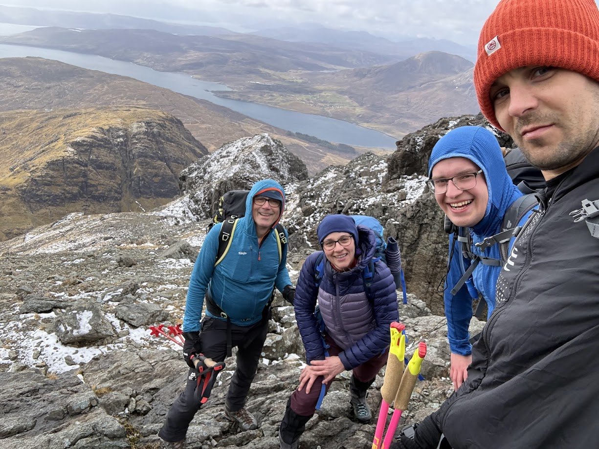 Martyn writes: “On Friday, part of the club set off from Inverness at 8:00 AM, heading towards Blà Bheinn (Blue Hill). We arrived at the parking area at the base of the mountain around 10:00 AM. After a short regroup and gear check, we began the ascent as a team: Lukasz, Stella, Martyn, and Greg.