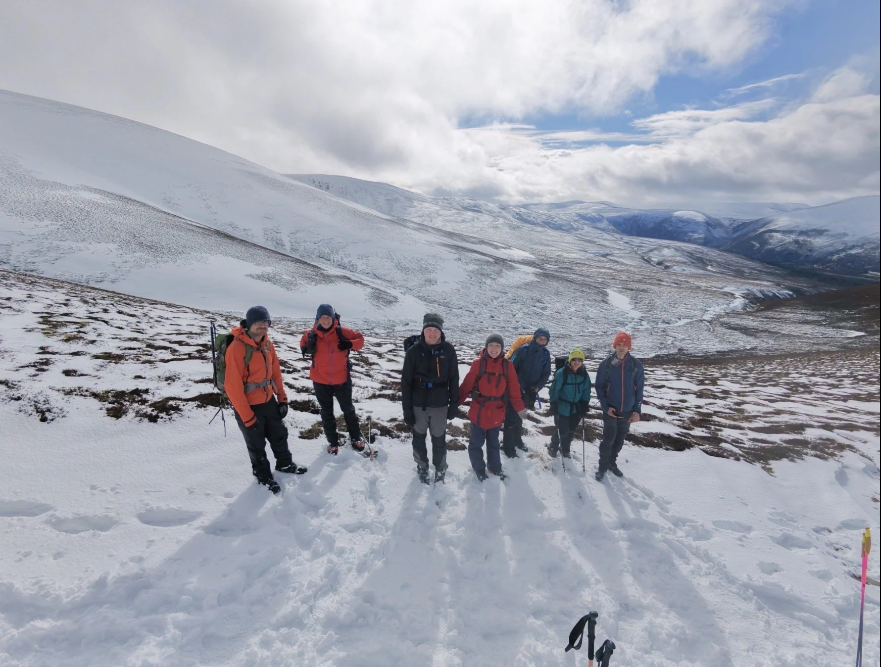 “Arrived at Ruigh Aiteachain Bothy today after coming down from Mullach Clach a' Bhlair. Our team: Kieran, Gill, Agnes, Lukasz, Euan and Emma.